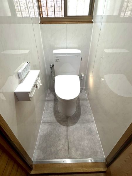 トイレを新しく取り替えて、壁・床の内装も新しくしました!掃除がしやすくなって良かったとお喜びの声もいただいております!
