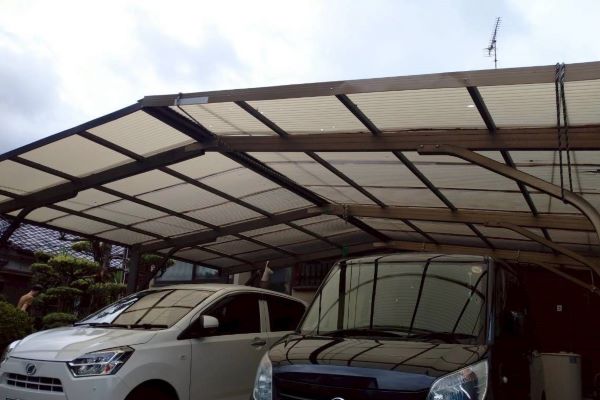 カーポートの屋根は紫外線の日焼けや劣化で穴が開いているところもありました。屋根を新しく取り替えて、これで雨の日でも乗り降りもラクにできます♪
