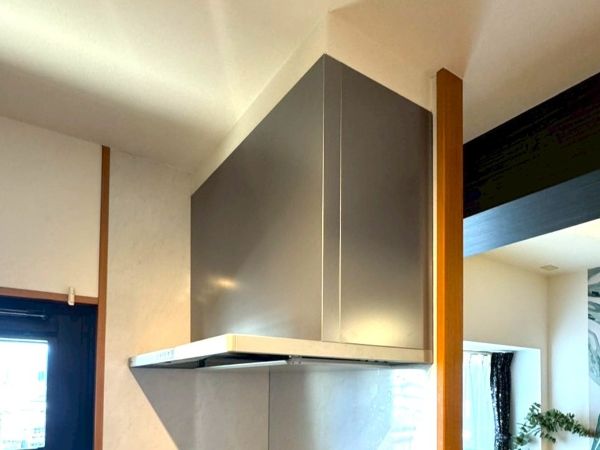 レンジフードの音が大きくなり気になるので取り替えたいとご依頼いただきました!静かになり、お掃除もラクにできます♪フードも薄型でスタイリッシュな見た目にもお喜びいただきました!